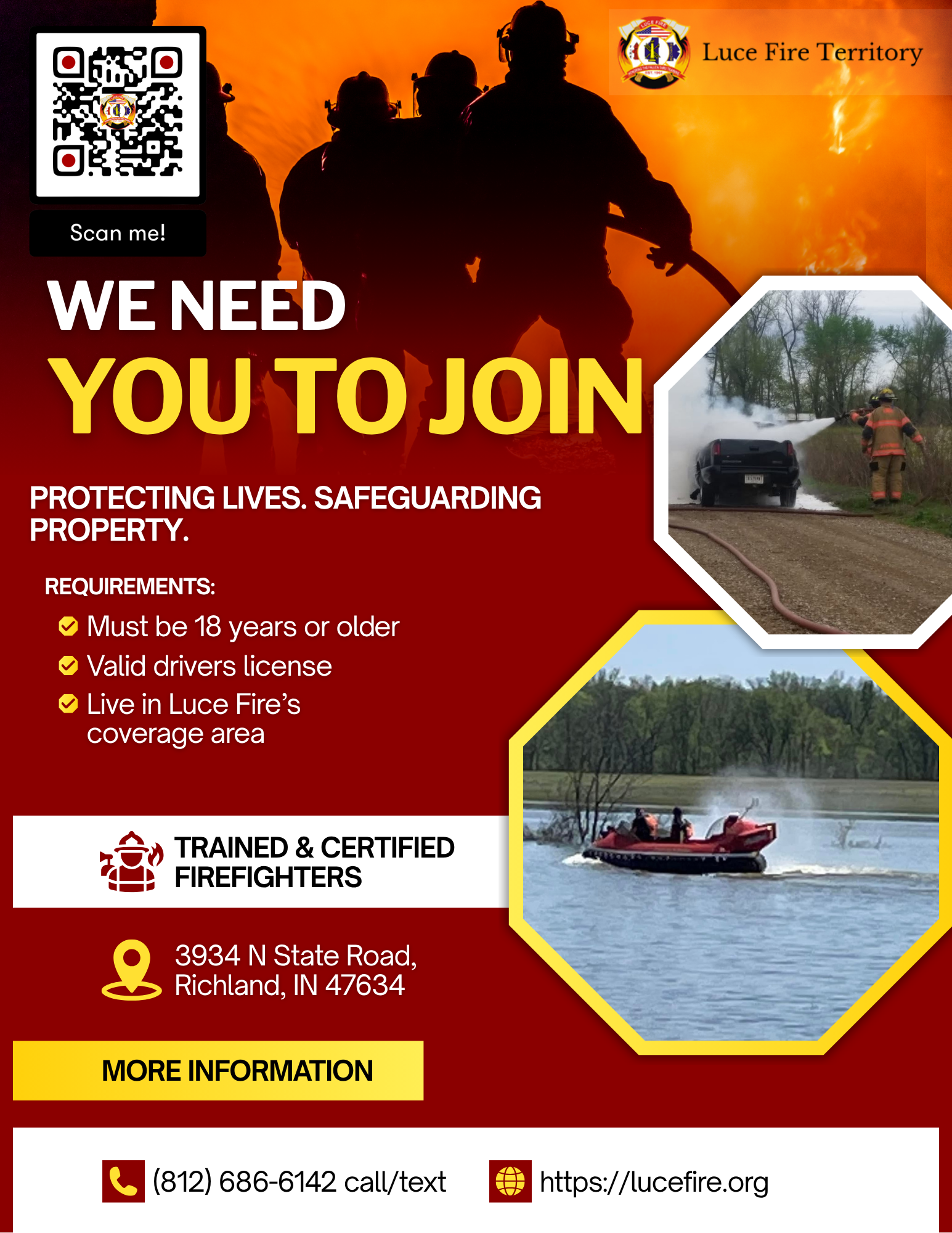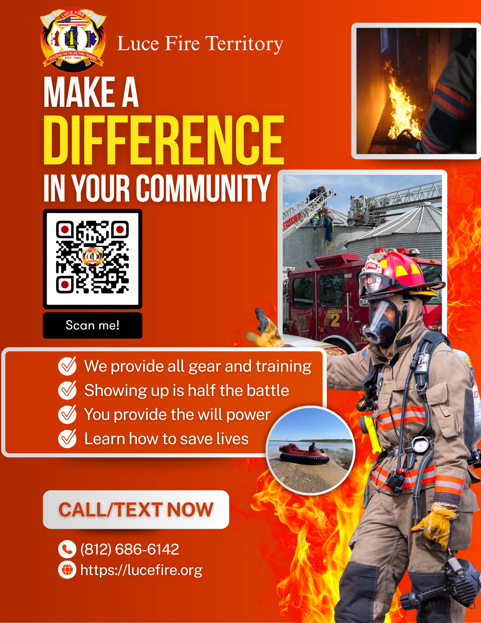 Our fire department depends on volunteers to keep our community safe. Luce Fire does not employ any full or part time firefighters. Whether you are interested in fires, medical, or just driving our impressive trucks, we can find a job for you. We only need your willingness to show up and we will provide everything else.